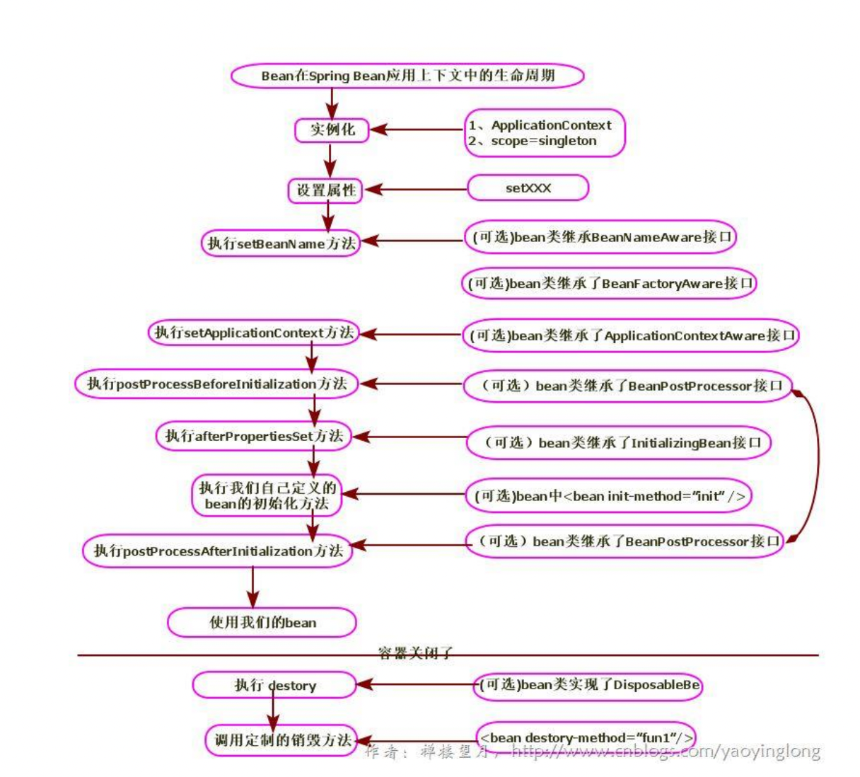 实例化 - 属性注入 - 初始化- initializeBean 这里面回调beanpostprocess 里的before和after的接口,在before和after中间去实现init-method 和 afterPropertiesSet (属于initiliazingBean)