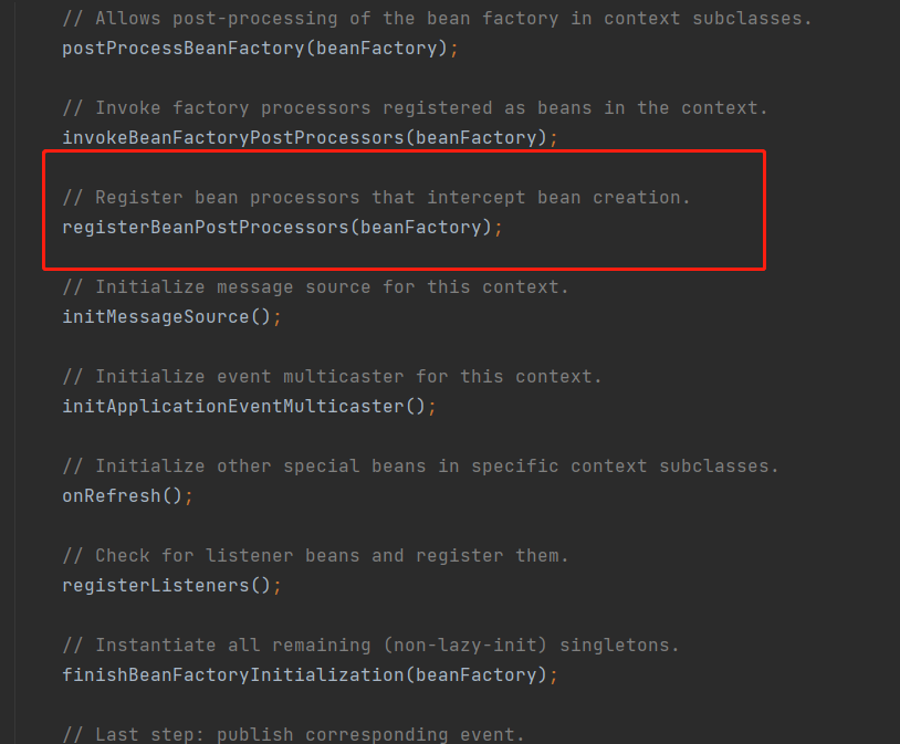 - 像容器中注册beanpostprocess接口,用于初始化时候进行回调