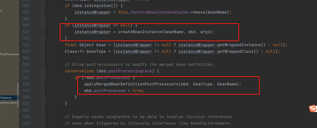- getEarlyBeanReference 提前暴露工厂方法到三级缓存中用户后续循环依赖的处理(还有种说法是在过MergedBeanDefinitionPostProcessor.postProcessMergedBeanDefinition 里面提前暴露)