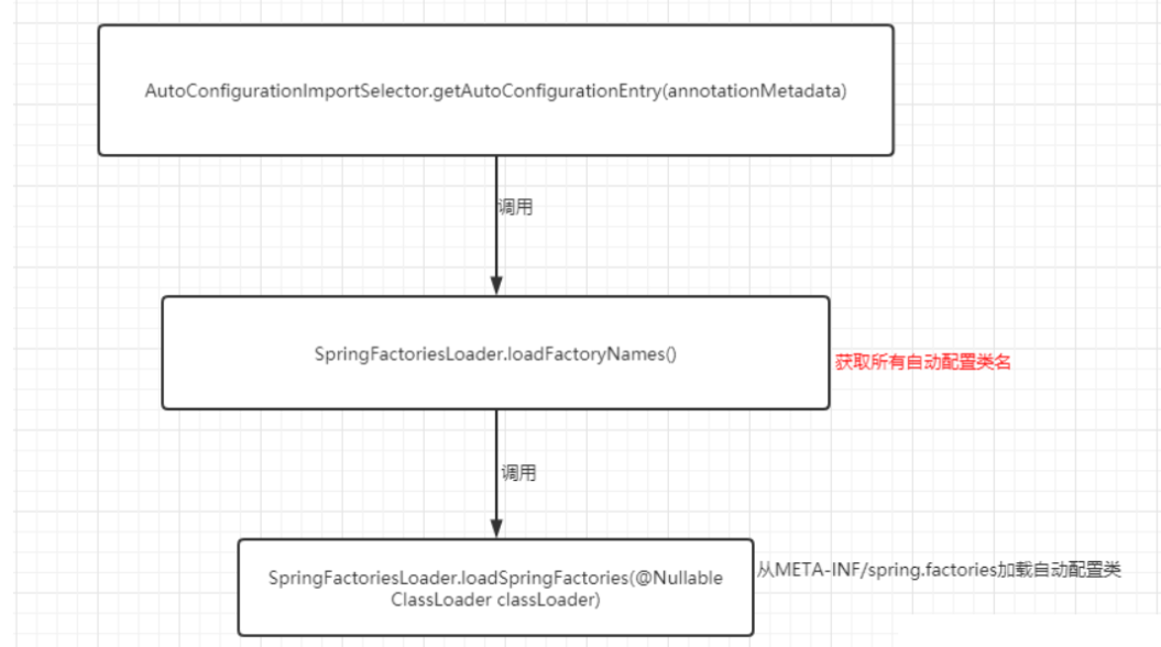 - AutoConfigurationImportSelector 类实现了 ImportSelector接口,也就实现了这个接口中的 selectImports方法,该方法主要用于获取所有符合条件的类的全限定类名,这些类需要被加载到 IoC 容器中