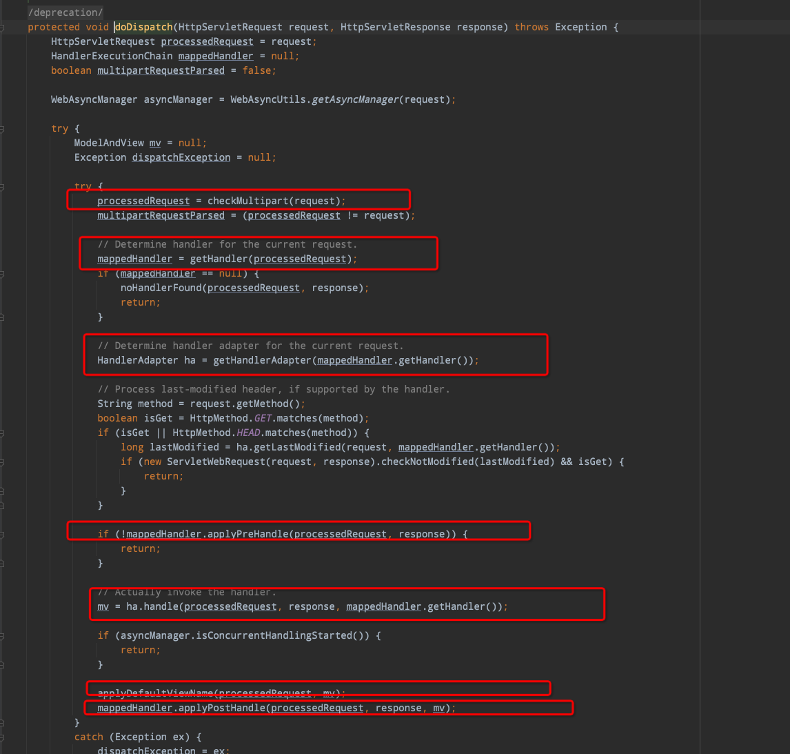 5. doService - 〉 doDispatch(开始进入DispatcherServlet)