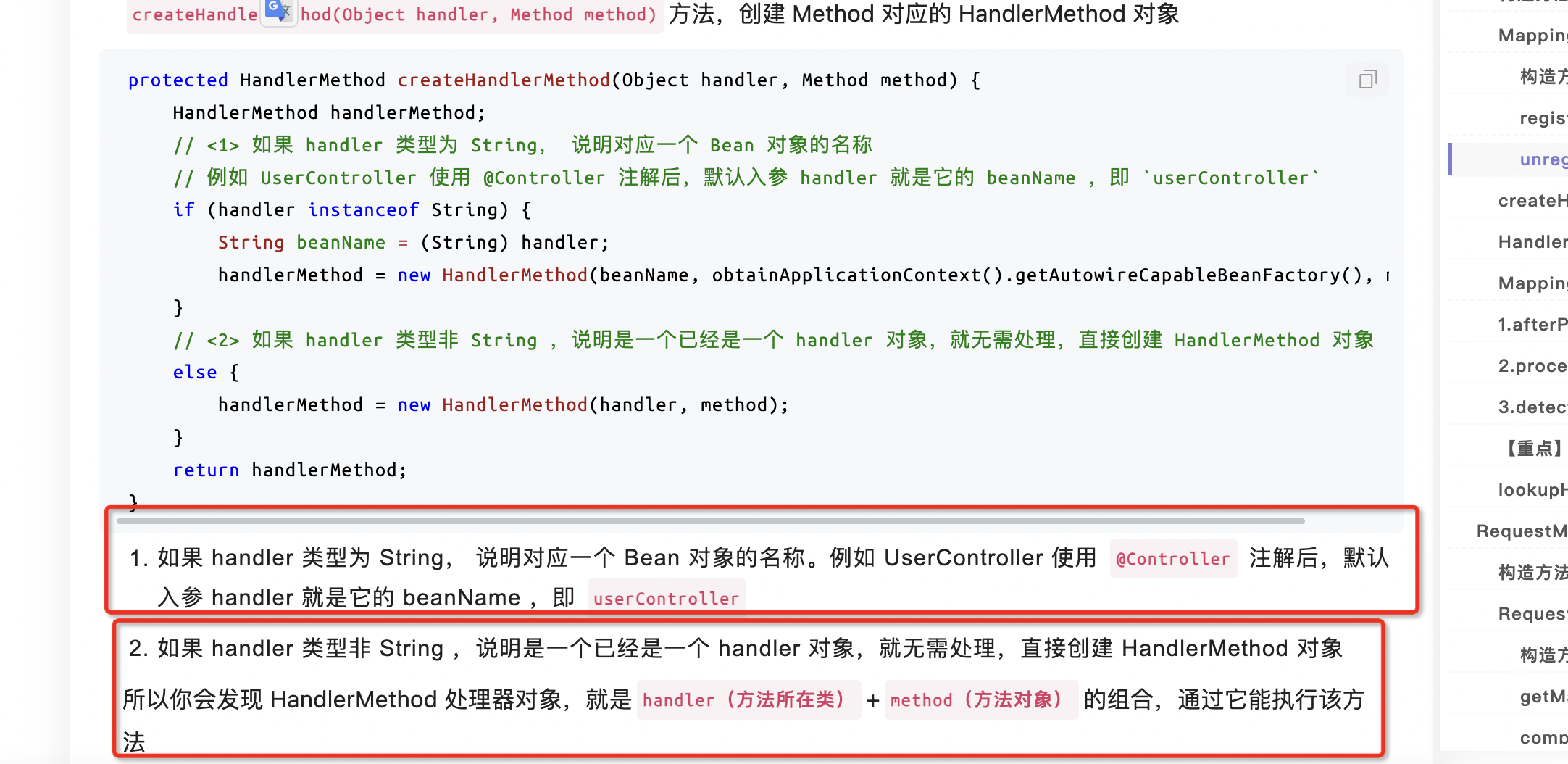 该系是基于 Method 进行匹配。例如,我们所熟知的 @RequestMapping 等注解的方式。一共就三个类,不多😈😈😈(红色框) createHandlerMethod:创建