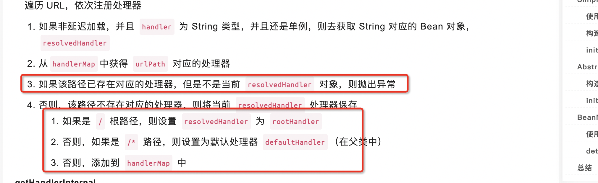registerHandler: registerHandler(String[] urlPaths, String beanName) 方法,注册多个 URL 的处理器,方法如下: